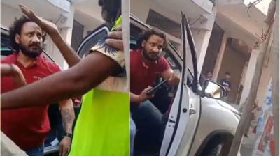 फॉर्च्यूनर से निकला गुंडागर्दी करता शख्स, सफाईकर्मी को थप्पड़ मारकर पिस्तौल तानी, गाली-गलौज का वीडियो सोशल मीडिया पर आग की तरह फैला