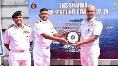 समुद्री डकैती विरोधी अभियानों के लिए आईएनएस शारदा को ऑन द स्पॉट यूनिट प्रशस्ति पत्र से मिला सम्मान