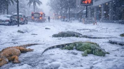 सौ साल बाद अमेरिका में भयंकर ठंड, ठिठुरन के चलते पेड़ों से टपकने लगीं छिपकलियां