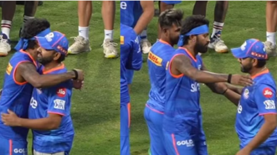 मुंबई इंडियंस के कप्तान हार्दिक पांड्या और रोहित शर्मा का एक-दूसरे लगया गले