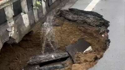 बोर्ड ऑफिस चौराहा में बारिश ने खोली सड़क की खामियाँ, लगभग 10 फीट गड्ढा