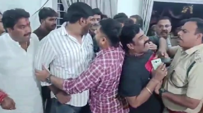 प्रदेश कांग्रेस अध्यक्ष जीतू पटवारी के बंगले पर प्रदर्शन, भाजपा नेत्रियों ने पोस्टर फाड़े