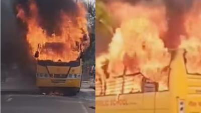 इंदौर हादसा: स्पार्क से धधकी स्कूल बस, कुछ ही मिनटों में आग ने लिया भीषण रूप, बच्चों को समय पर निकाला गया
