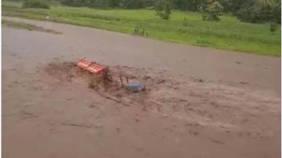 रेत निकालने के दौरान नदी में उमड़ा पानी, दोनों युवकों की जान पर बनी आफत, ट्रैक्टर समेत फंस गए बीच धारा में