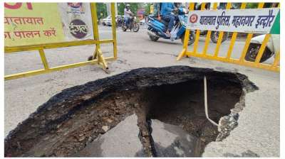 इंदौर: विजयनगर थाना क्षेत्र के स्कीम नंबर 54 में शुक्रवार को सड़क का एक बड़ा हिस्सा धंस गया था, जिससे वहां पर करीब 5 फीट का गहरा गड्ढा हो गया था....