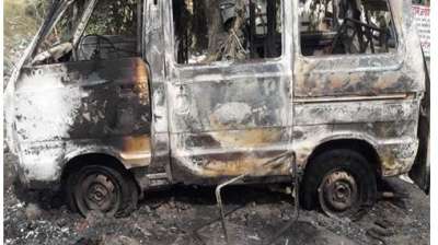 दर्दनाक हादसे के बाद भड़की भीड़, वैन को लगाई आग, दो युवकों की गई जान