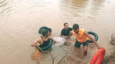 तेज बहाव में फंसे युवक ने पेड़ पर चढ़कर बचाई जान, SDERF ने रेस्क्यू कर निकाला