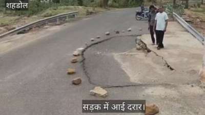 तेज बारिश से सड़कों में आई दरार, जिम्मेदारों को खबर नहीं, राहगीरों को बचाने लोगों ने रखे पत्थर