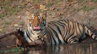 मंडला में भीषण गर्मी से बेहाल, टाइगर्स ने लिया चिल्ड वाटर का सहारा