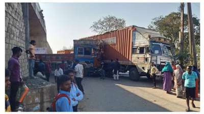 नेशनल हाईवे 43 पर दो ट्रकों की भिड़ंत में एक की मौत, हादसे का बाद लगा लंबा जाम