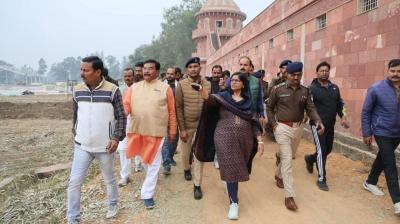 डबरा में नवनिर्मित नवग्रह मंदिर कार्यक्रम को लेकर कलेक्टर-एसपी का निरीक्षण