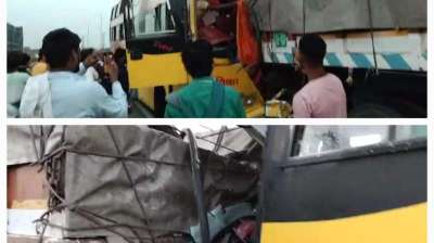 ट्रक से टकरायी वॉल्वो बस,दर्जनभर यात्री घायल,चार की हालत गंभीर