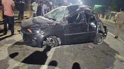 हाईवे पर कार डिवाइडर से टकराई, 4 फीट लंबा सरिया युवक के सीने में