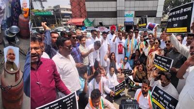गैस सिलेंडर महंगाई पर दुर्ग में कांग्रेस का प्रदर्शन