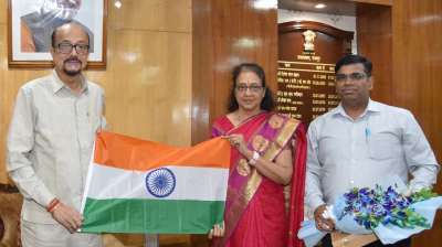 रायपुर : राज्यपाल रमेन डेका से आज राजभवन में छत्तीसगढ़ मुख्य पोस्टमास्टर जनरल वीणा आर.श्रीनिवास एवं वरिष्ठ छत्तीसगढ़ डाक सेवाएं दिनेष कुमार मिस्त्री निदेषक ने सौजन्य मुलाकात की और तिरंगा...