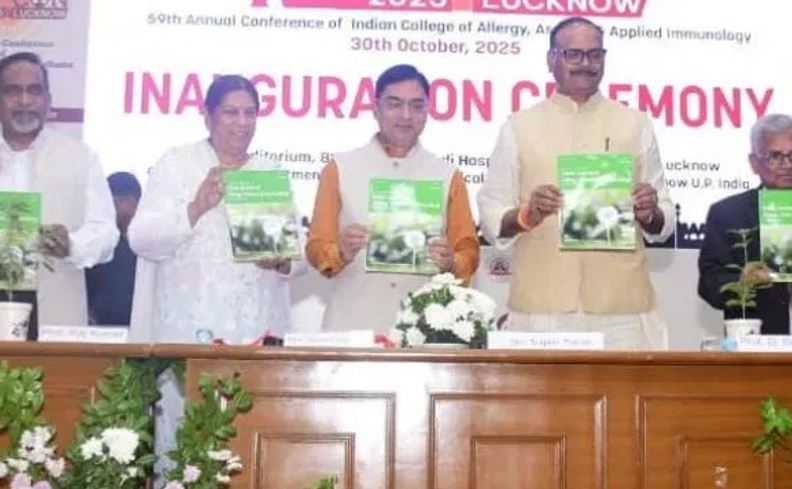 लखनऊ में किंग जॉर्ज मेडिकल यूनिवर्सिटी (KGMU) में गुरुवार को 59वीं इंडियन कॉलेज ऑफ एलर्जी, अस्थमा एंड एप्लाइड इम्यूनोलॉजी कॉन्फ्रेंस का औपचारिक आगाज हुआ. कार्यक्रम के मुख्य अतिथि उत्तर प्रदेश के उपमुख्यमंत्री ब्रजेश पाठक ने शुभारंभ किया और अस्थमा, एलर्जी व फेफड़ों की बीमारियों से बचाव के लिए स्वस्थ जीवनशैली अपनाने की जोरदार अपील की. उन्होंने कहा कि वायु प्रदूषण से बढ़ते खतरों को देखते हुए सरकार जागरूकता अभियान चला रही है, लेकिन व्यक्तिगत स्तर पर बदलाव जरूरी है.