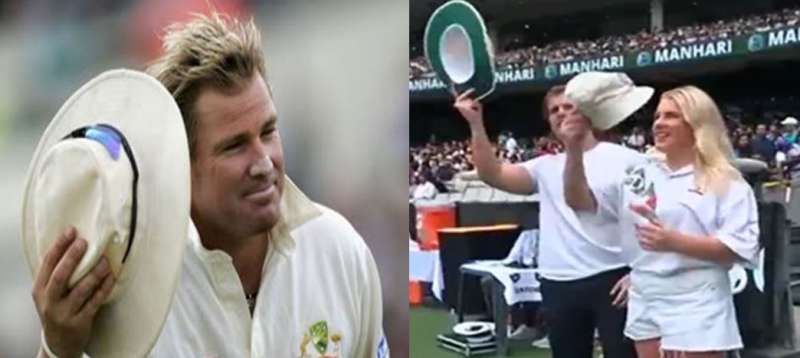 शेन वॉर्न के बेटे और बेटी ने ही बाउंड्री लाइन के पास खड़े होकर फ्लॉप हैट उतरी। मेलबर्न क्रिकेट ग्राउंड वॉर्न का होम ग्राउंड होने के साथ ही सबसे पसंदीदा मैदान भी था। इस मैदान पर 11 टेस्ट में उनके नाम 56 विकेट हैं। 1994 में बॉक्सिंग डे टेस्ट के दौरान वॉर्न ने इस मैदान पर हैट्रिक विकेट लिया था। 2006-07 एशेज सीरीज के दौरान शेन वॉर्न ने मेलबर्न क्रिकेट ग्राउंड पर ही एंड्रयू स्ट्रॉस को आउट कर उन्होंने अपना 700वां टेस्ट विकेट लिया था।