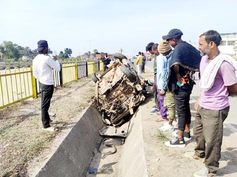 बिलासपुर । थाना अंतर्गत बेलतरा, जाली ओवर ब्रिज एन एच 130 हाईवे रोड पर बेलतरा बस स्टैंड के पास एक कार ष्टत्र10 ्रष्ठ 9404 अनियंत्रित होकर हाईवे किनारे लगे रेलिंग से जा टकराई और रेलिंग को तोड़ते हुए सर्विस रोड के नाले पर जा गिरा, घटना इतना जबरदस्त था कि कार का इंजन नाले में फेंका गया और कार बुरी तरह से क्षतिग्रस्त होकर नाले में जा पलटी