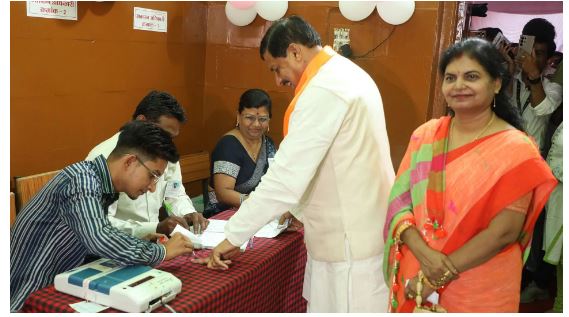 सीएम मोहन यादव ने परिवार के सदस्यों के साथ किया मतदान, बुजुर्ग मतदाता की मदद की