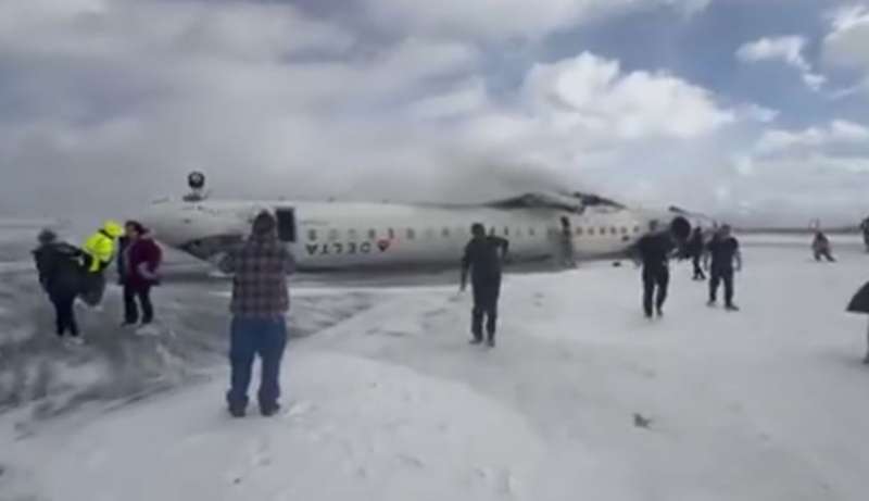 टोरंटो में डेल्टा एयरलाइंस का विमान क्रैश, लैंडिंग के दौरान पलटा
