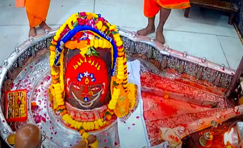 श्री महाकालेश्वर मंदिर के पुजारी ने बताया कि विश्व प्रसिद्ध श्री महाकालेश्वर मंदिर में अश्विन माह शुक्ल पक्ष की पंचमी तिथि वार शनिवार सुबह 4 बजे भस्म आरती हुई। इस दौरान वीरभद्र जी से आज्ञा लेकर मंदिर के पट खुलते ही पण्डे पुजारियों ने गर्भगृह में स्थापित सभी भगवान की प्रतिमाओं का पूजन किया। जिसके बाद भगवान महाकाल का जलाभिषेक दूध, दही, घी, शक्कर पंचामृत और फलों के रस से किया गया।