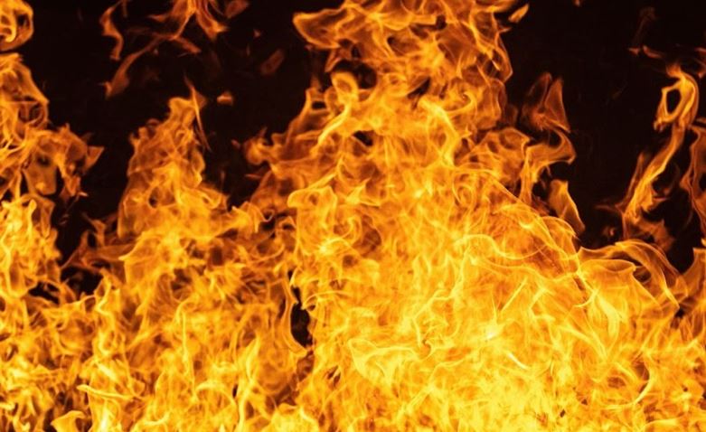 ग्राउंड फ्लोर से उठी आग की लपटें
