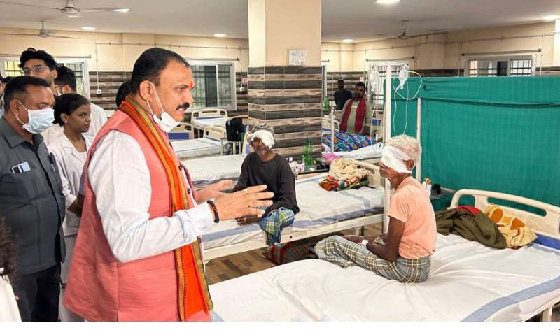 रायपुर : स्वास्थ्य मंत्री श्याम बिहारी जायसवाल ने आज रायपुर के मेकाहारा अस्पताल का निरीक्षण किया। जायसवाल ने अस्पताल में भर्ती मरीजों को मिल रही सुविधाओं का जायजा लिया और मरीजों से बात कर उनके जल्द स्वस्थ होने की कामना की। जायसवाल ने इस दौरान दंतेवाड़ा से आए मोतियाबिंद ऑपरेशन कराने वाले मरीजों से भी मुलाकात कर उनके स्वास्थ्य की जानकारी ली। स्वास्थ्य मंत्री ने अस्पताल के स्टाफ और चिकित्सकों से भी बात कर उन्हें बेहतर काम करने और मरीजों की उचित देख देख करने के निर्देश दिए।