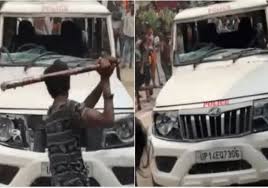 गाजियाबाद में पुलिस की कार में कांवड़ियों ने की तोड़फोड़