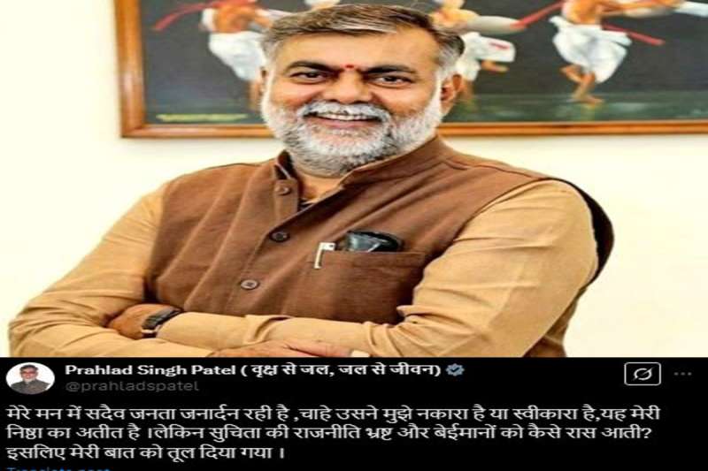 भोपाल: पंचायत एवं ग्रामीण विकास मंत्री प्रहलाद पटेल के विवादित बयान ने राजनीतिक गलियारों में हलचल मचा दी है। भाजपा के राष्ट्रीय नेतृत्व ने उनके बयान को गंभीरता से लिया है और प्रदेश संगठन से पूरी जानकारी मांगी है। इस बीच प्रहलाद पटेल ने अपने एक्स हैंडल पर भाजपा के राष्ट्रीय अध्यक्ष जेपी नड्डा को टैग करते हुए लिखा कि मेरे मन में हमेशा जनता रहती है, उसने मुझे नकारा हो या स्वीकारा हो, यह मेरी वफादारी का अतीत है। हालांकि बाद में उन्होंने अपने सोशल मीडिया पोस्ट से नड्डा का नाम हटा दिया, जिससे यह कयास लगाए जा रहे हैं कि पार्टी नेतृत्व ने उनसे इस मामले पर बात की है।