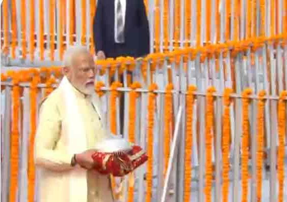 प्रधानमंत्री नरेंद्र मोदी राम जन्मभूमि परिसर पहुंच गए हैं। सुबह साढ़े 10 बजे वे महर्षि वाल्मीकि एयरपोर्ट पहुंचे। यहां से वे हेलिकॉप्टर के जरिए मंदिर के लिए रवाना हुए। इस दौरान उन्होंने अयोध्या धाम का वीडियो बनाया। PM दोपहर 12:05 बजे से 12:55 बजे तक प्राण प्रतिष्ठा समारोह के विधि-विधान को पूरा करेंगे।