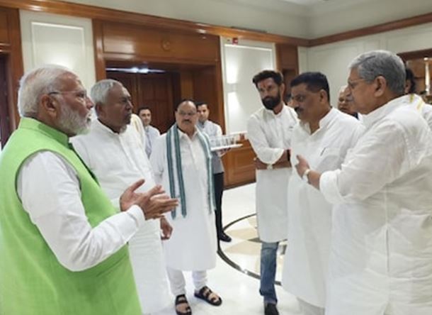 भाजपा के नेतृत्व वाले एनडीए के नवनिर्वाचित सांसद आज नरेंद्र मोदी को अपना नेता चुनने के लिए बैठक करेंगे, जिससे उनके तीसरे कार्यकाल के लिए प्रधानमंत्री के रूप में शपथ लेने का रास्ता साफ हो जाएगा। इसी क्रम में गुरुवार से ही नवनिर्वाचित सांसदों का दिल्ली में आगमन शुरू हो गया है। एनडीए की साझा बैठक से पहले सहयोगी दल पार्टी की संसदीय बैठक कर रहे हैं। इसके बाद वे एनडीए की मुख्य बैठक में शामिल होंगे।इसी क्रम में दिल्ली में जेडीयू के नेता आज सुबह पार्टी की संसदीय दल की बैठक के लिए बिहार के सीएम और पार्टी नेता नीतीश कुमार के आवास पर पहुंचने लगे हैं। इसी क्रम में सांसद ललन सिंह और सांसद देवेश चंद्र ठाकुर बिहार सीएम के आवास पर पहुंचे।