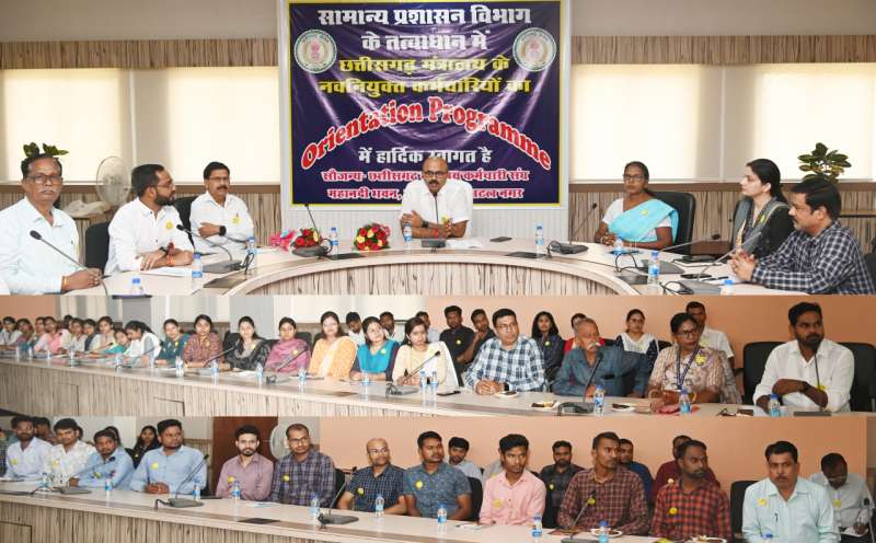 रायपुर : मंत्रालय महानदी भवन में छत्तीसगढ़ मंत्रालयीन सेवा में नवनियुक्त कर्मचारियों के लिए ओरियेंटेशन (प्रशिक्षण) कार्यक्रम का आयोजन सामान्य प्रशासन विभाग के तत्वावधान में किया गया। सामान्य प्रशासन विभाग के सचिव अन्बलगन पी ने नवनियुक्त कर्मचारियों को मंत्रालयीन कार्य के संबंध महत्वपूर्ण जानकारी दी। उन्होंने कार्यक्रम को सम्बोधित करते हुये कहा कि अधिकारी कर्मचारी अपने अच्छे कार्य से प्रगति कर सकते है। उन्होंने कार्य पूरी मेहनत, लगन एवं समपर्ण की भावना से करने के लिए कर्मचारियों को प्रेरित किया। सामान्य प्रशासन विभाग के सचिव ने कर्मचारियों को प्रशिक्षण के महत्व के संबंध में भी बताया। कार्यक्रम के दौरान मंत्रालयीन अधिकारी एवं कर्मचारियों ने भी अपने अनुभव के बारे में बताया। कार्यक्रम में मंत्रालयीन कर्मचारी संघ का सहयोग सहरानीय रहा।