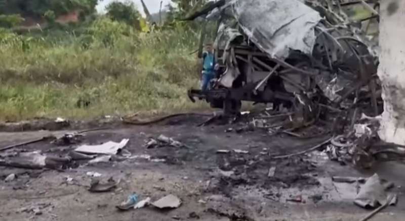 शनिवार की सुबह ब्राजील में मिनास गेरैस राज्य के लाजिन्हा शहर के पास एक यात्री बस और ट्रक के बीच हुई भीषण टक्कर में 35 लोगों की जान गई है। 13 घायलों को टेओफिलो ओटोनी के अस्पतालों में भर्ती कराया गया है। अल जजीरा की रिपोर्ट के मुताबिक बस साओ पाउलो से रवाना हुई थी। इसमें कुल 45 यात्री सवार थे। टायर फटने की वजह से बस बेकाबू हो गई और एक ट्रक से जा भिड़ी। एक कार भी बस की चपेट में आई। मगर गनीमत रही कि इसमें सवार तीनों व्यक्ति सकुशल हैं।