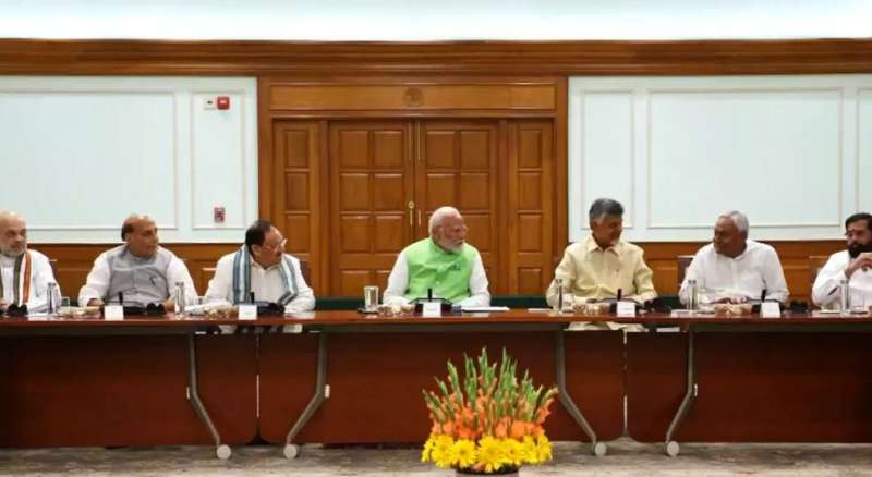 पीएम मोदी के नेतृत्व में हुई बैठक में टीडीपी अध्यक्ष एन चंद्रबाबू नायडू, जदयू नेता और बिहार के मुख्यमंत्री नीतीश कुमार, शिवसेना नेता और महाराष्ट्र के सीएम एकनाथ शिंदे और एलजेपी (रामविलास) नेता चिराग पासवान भी मौजूद रहे। बैठक में भाजपा के कई वरिष्ठ नेता भी शामिल हुए।