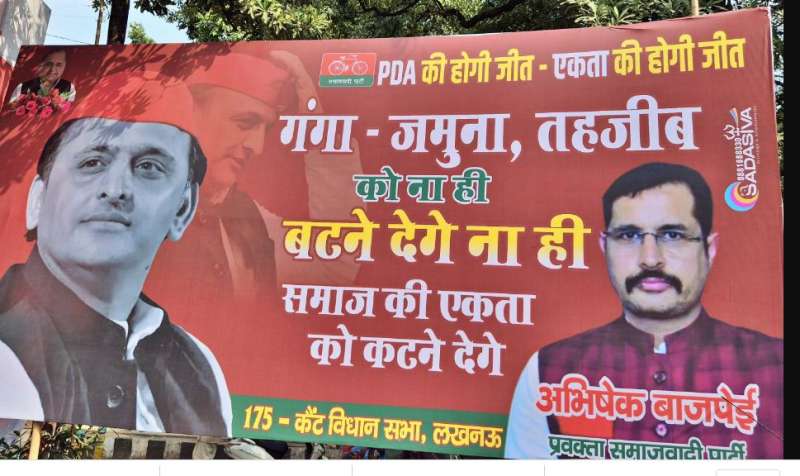 लखनऊ । उत्तर प्रदेश में पोस्टर को लेकर सियासत जारी है। यहां सत्ता पक्ष और विपक्ष के बीच पोस्टर वार चल रहा है। शनिवार को समाजवादी पार्टी कार्यालय के बाहर एक और पोस्टर लगाया गया है जिसमें लिखा है, तुम बटने-कटने का राग लिखो, हम तारीख का हिसाब लिखेंगे। समाजवादी पार्टी के नेता मोहम्मद इखलाक ने यह पोस्टर लगवाया है। उसमें उन्होंने स्लोगन के जरिए सत्तारूढ़ दल को घेरने का प्रयास किया है। पोस्टर में लिखा है- तुम नफरत का योग लिखो, हम तरक्की का संयोग लिखेंगे। तुम जमीन पर जुल्म लिखो। हम आसमान में पीडीए का इंकलाब लिखेंगे। पोस्टर में महंगाई और कानून व्यवस्था को लेकर भी छोटे छोटे चित्र दर्शाए गए हैं। तस्वीर में सपा मुखिया अखिलेश यादव के साथ शिवपाल और आदित्य यादव की भी फोटो लगाई गई है। इसी तरह मुख्यमंत्री आवास के चौराहे पर भी एक पोस्टर लगा है। अखिलेश यादव की तस्वीर वाले इस पोस्टर पर लिखा है- जुड़ेंगे तो बढ़ेंगे। यह पोस्टर सपा नेता मृत्युंजय यादव बिट्टू और आशुतोष गुप्ता की तरफ से लगवाया गया है। इसके पहले शुक्रवार को वाराणसी में भी सपा की तरफ से पोस्टर लगाया गया था। इसमें संकल्प 2024 लक्ष्य 2027 लिखते हुए अखिलेश यादव को भगवान श्री कृष्ण और राहुल गांधी को अर्जुन की भूमिका में दर्शाया गया था। इसके पहले गोरखपुर में भाजपा की तरफ से बंटेंगे तो कटेंगे के पोस्टर लगे। उसके बदले में सपा की ओर से जुड़ेंगे तो बढ़ेंगे के पोस्टर भी काफी चर्चा में रहे। उत्तर प्रदेश में नौ विधानसभा सीटों पर उपचुनाव 20 नवंबर को होगा।