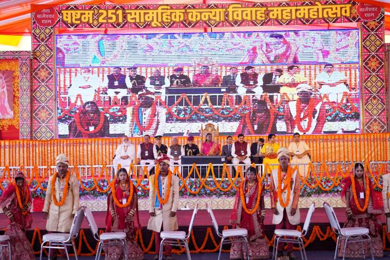 राष्ट्रपति द्रौपदी ने अपने संबोधन में कहा, 'मैं सभी जोड़ों को बधाई देती हूं। सभी के सुखमय जीवन की कामना करती हूं। मैं बागेश्वर धाम के धीरेंद्र शास्त्री का आभार व्यक्त करता हूं जिन्होंने आपको विवाह बंधन में बांधा। विवाहित जोड़ों को घरेलू सामान के साथ-साथ आजीविका के लिए आटा चक्की और सिलाई मशीन भी दी जा रही है।'