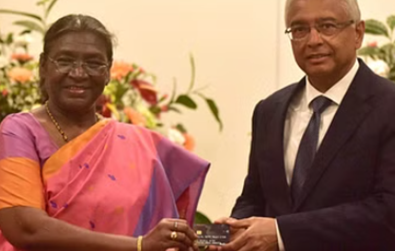 भारत की राष्ट्रपति द्रौपदी मुर्मू मॉरिशस के दौरे पर हैं। इस दौरान उन्होंने मॉरिशस के प्रधानमंत्री जुगनौथ से मुलाकात की। राष्ट्रपति के साथ मुलाकात के दौरान दोनों देशों के बीच द्विपक्षीय संबंधों को मजबूत करने पर चर्चा की गई। दोनों नेताओं ने भारत और मॉरीशस के बीच ऐतिहासिक और गहरी साझेदारी को और गति प्रदान करने के तरीकों पर बात की। मुलाकात के दौरान, राष्ट्रपति ने उन्हें रूपे कार्ड उपहार में दिया, जिसे हाल ही में मॉरीशस में लॉन्च किया गया है।