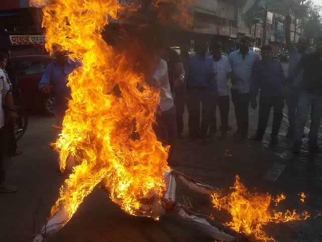 पहलगाम आतंकी हमले के विरोध में भोपाल में प्रदर्शन, आतंकवाद का पुतला दहन