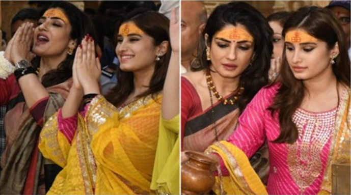 रवीना टंडन और राशा थडानी माथे पर त्रिपुंड तिलक लगाए और हाथ में पूजा की थाली लिए पहुंचीं। एक्ट्रेस ने बेटी के साथ पूजा के दौरान की भी कुछ फोटो शेयर की है। जिसमें रवीना और राशा, शिवलिंग पर जल चढ़ाते हुए नजर आ रही हैं। वीडियो को शेयर करते हुए रवीना टंडन ने कैप्शन में लिखा, "सोमनाथ! ॐ त्र्यम्बकं यजामहे सुगन्धिं पुष्टिवर्धनम् | उर्वारुकमिव बन्धनान्मृत्योर्मुक्षीय माऽमृतात् || हर हर महादेव!"