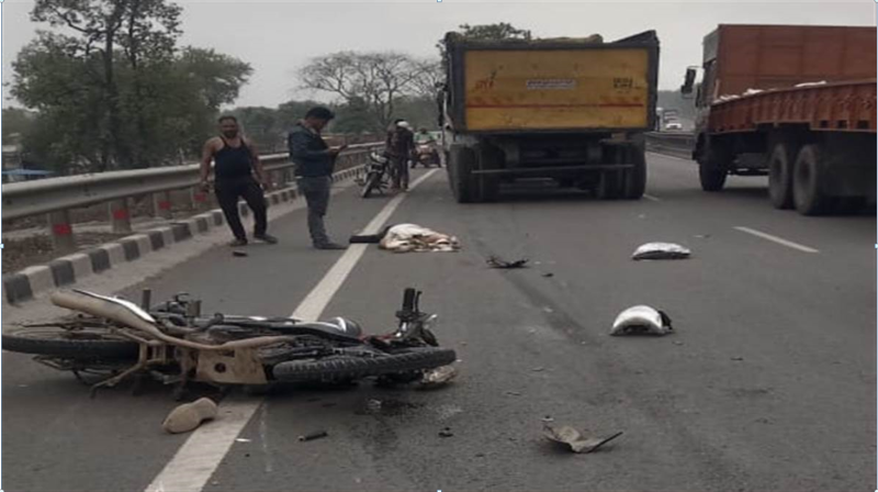 ट्रक ने मोटरसाइकिल को मारी टक्कर