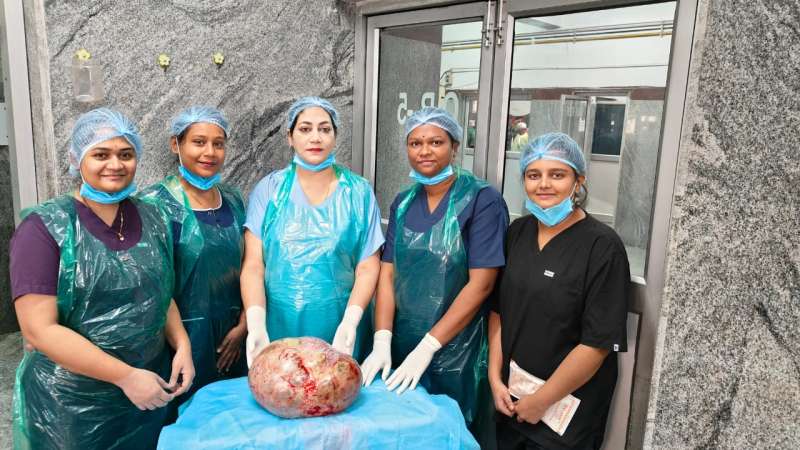 सिम्स अस्पताल के अधीक्षक डॉक्टर एस नायक ने बताया कि मरीज लगनी बाई पति हरिशंकर, उम्र 35 वर्ष, निवासी ग्राम चिल्हाटी बिलासपुर, पिछले एक साल से पेट की समस्या से परेशान थी। 4 महीनो से पेट में सूजन आने लगी, जो कि बढ़ते जा रही थी। प्रायवेट अस्पताल में जांच में पेट में ट्यूमर होना बताया गया, परंतु कई अस्पतालों में दिखाने के बाद भी उसे उचित लाभ नहीं मिल पाया। ट्यूमर इतना बढ़ चुका था मानो वह 9 महीने की गर्भवती लग रही थी। मरीज को सांस लेने में परेशानी एवं अन्य परेशानी बढऩे लगी। जिसके बाद वह