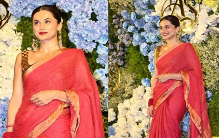 शादी के बाद लाल साड़ी में दिखीं तापसी पन्नू