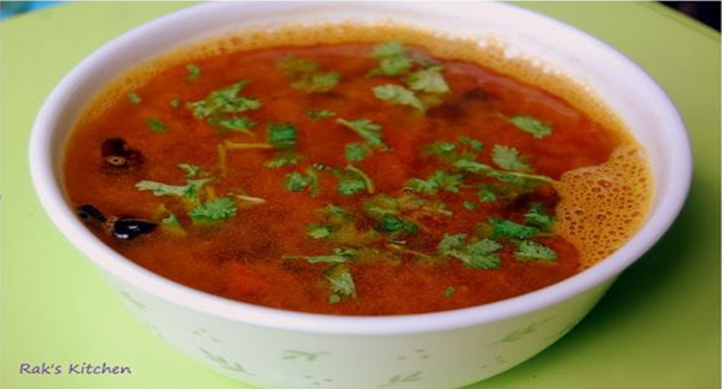 सामग्री- 3 टमाटर (कद्दूकस किए हुए), 1 प्याज कटा हुआ (इच्छानुसार), 2 हरी मिर्च, नमक स्वादानुसार, 1/2 चम्मच हल्दी पाउडर, 1 टीस्पून लाल मिर्च पाउडर, 1.5 कप पानी, 1/2 कप इमली का पानी, 1.5 टीस्पून रसम पाउडर (इच्छानुसार), 1 टीस्पून धनिया के बीज, 8-10 लहसुन, 1 जीरा, 2-3 टीस्पून काली मिर्च, मुट्ठीभर धनिया पत्ती