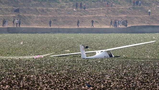 ट्रेनी विमान क्रैश, तालाब में गिरा