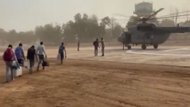 छत्तीसगढ़ के नक्सल प्रभावित इलाकों में हेलीकॉप्टर से रवाना हुआ मतदान दल